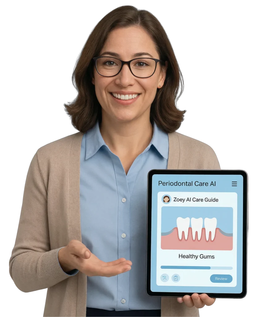 Your periodontal health questions deserve clear, evidence-informed answers you can trust. Our guided resources and Zoey, your AI Care Guide, help you better understand your symptoms and what they may mean—so you can move forward with clarity instead of uncertainty.