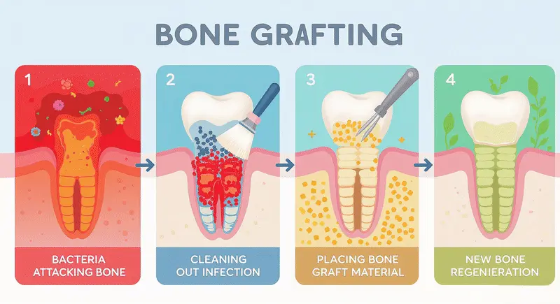 These periodontal pockets, when they exceed 4-5 millimeters in depth, signal that bone loss has occurred beneath your gumline. The good news? Bone grafting offers a proven path to regeneration and tooth preservation.