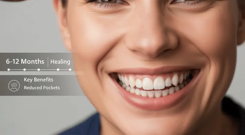 - Close and heal: The gum tissue is repositioned and sutured, beginning a healing process that can take 6-12 months for complete bone regeneration.