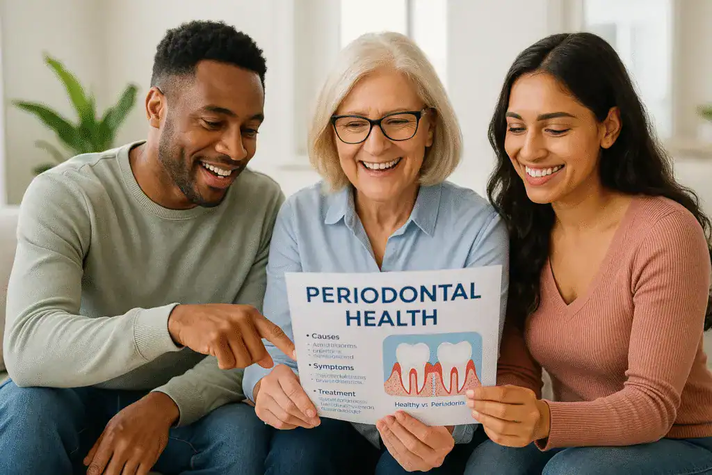We translate early symptom awareness into clear periodontal guidance through free resources, video guides, and AI-tools that protect your smile and gum health.